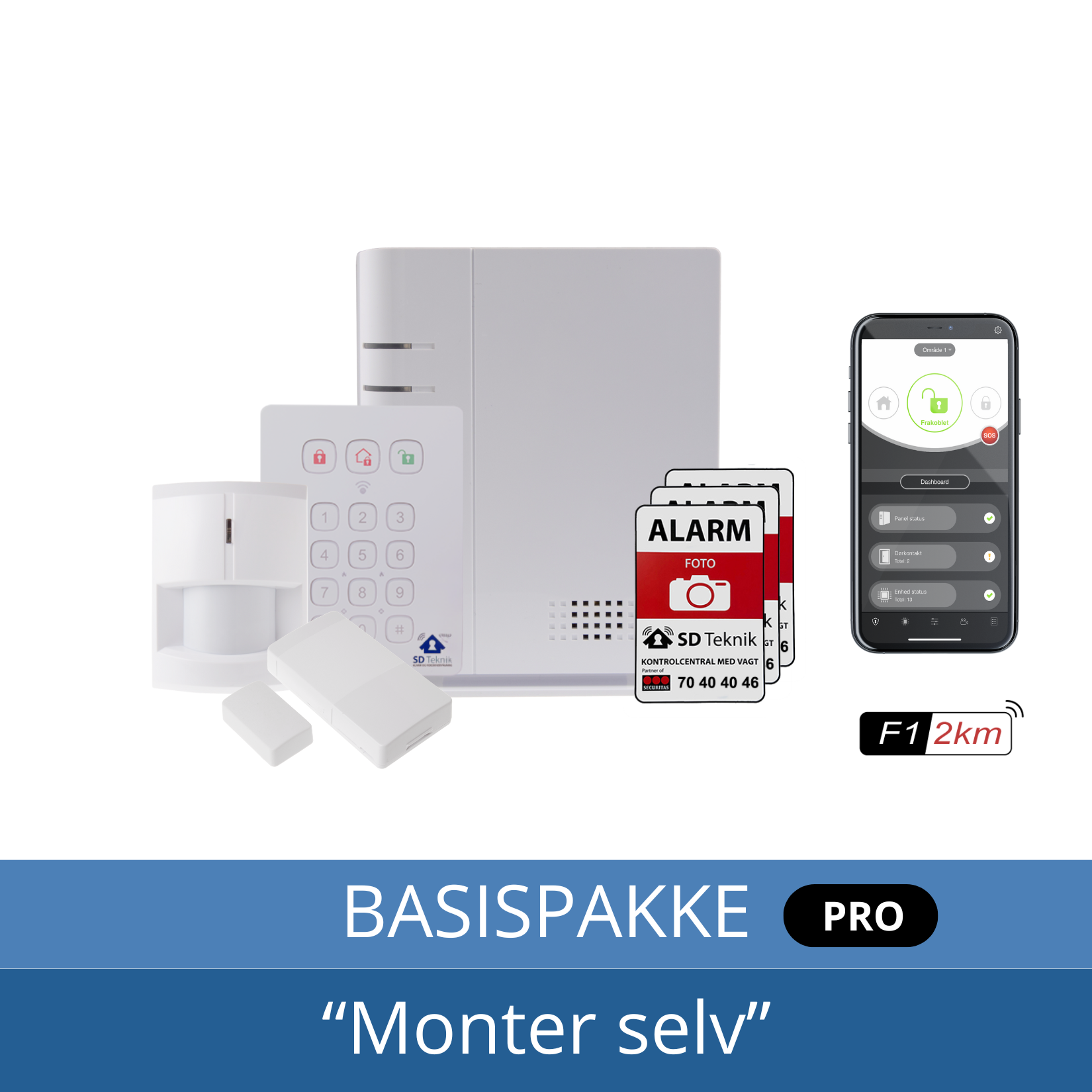 Smartbox Pro centralen har den nye F1 frekvens indbygget, hvilket betyder at alarmpanelet har en rækkevide på op til 2 km. Det dermed sagtens kan række ud til komponenter placeret i haveskur, værksted eller garage.
